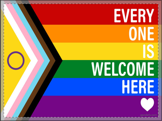 Everyone Is Welcome Here with Pride Progress Flag | Yard Sign